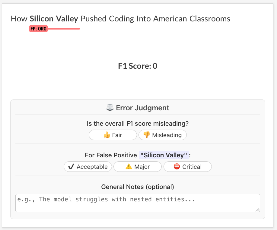 def evaluation_ui() -> Dict: """Returns a dictionary for a Prodigy "blocks" UI for evaluation.""" # ... your implementation here ...